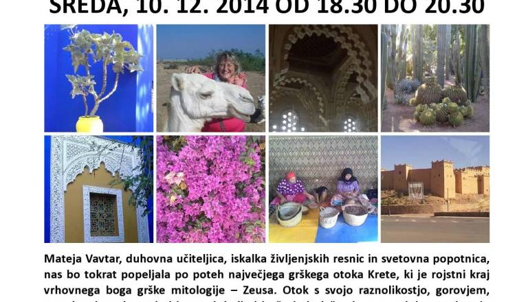 Mateja Vavtar, duhovna učiteljica, iskalka življenjskih resnic in svetovna popotnica, nas bo tokrat popeljala po poteh največjega grškega otoka Krete, ki je ...
