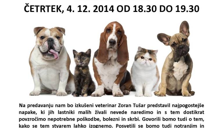 Na predavanju nam bo izkušeni veterinar Zoran Tušar predstavil najpogostejše napake, ki jih lastniki malih živali nevede naredimo in s tem dostikrat povzročimo ...