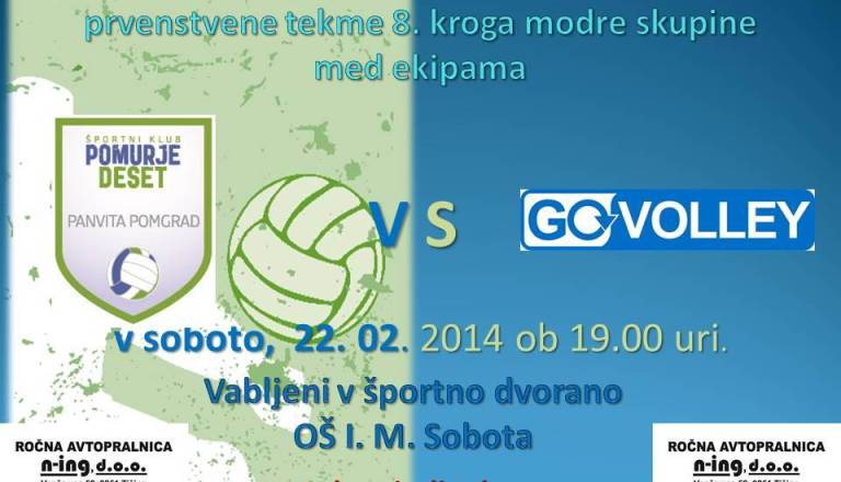 Ljubitelji in ljubiteljice odbojke, pozor! Modra skupina se preveša v sklepno fazo in soboški odbojkarji so blizu 2. mestu. V soboto, 22. februarja ob 19. uri ...