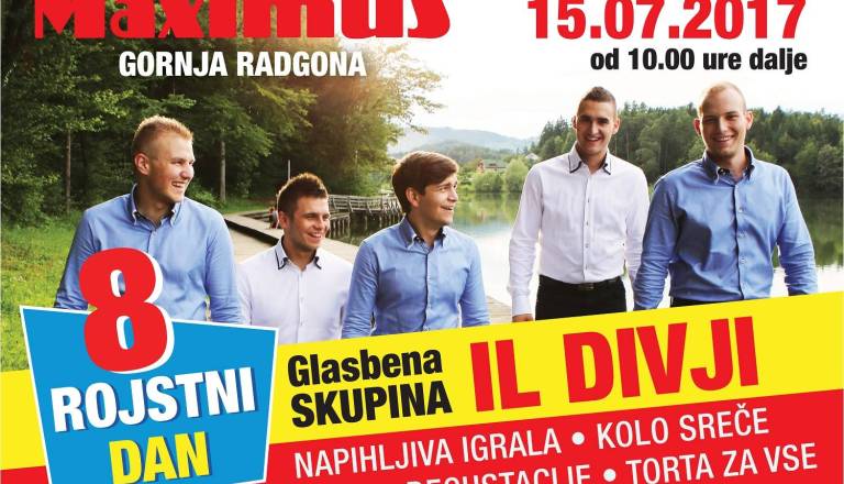 Vabljeni na praznovanje v Maximus Gornja Radgona! Praznovanje bo na senčni terasi ob Muri z glasbeno skupino IL DIVJI. Najmlajši se bodo gotovo razveselili ...