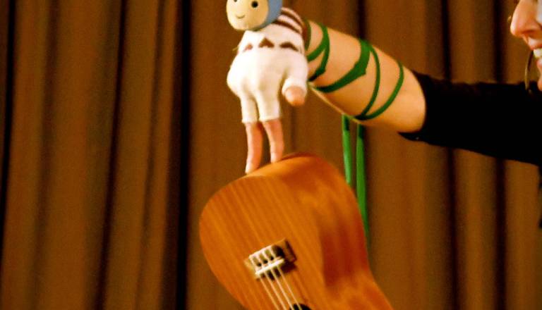 NESEM SONČNICO NA RAMI, Mednarodni center lutkovne umetnosti, Koper Lutkovni koncert uglasbenih Kosovelovih otroških pesmi za otroke od 3. leta. Režija in ...