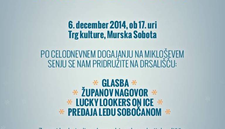 Vabilo na otvoritev drsališča Lucky Sobota ODPADE ZARADI TEHNIČNIH TEŽAV Pridemo. Zamrznemo. Drsamo. Doživimo zimo skupaj! Datum: sobota, 6. december 2014 Ura ...