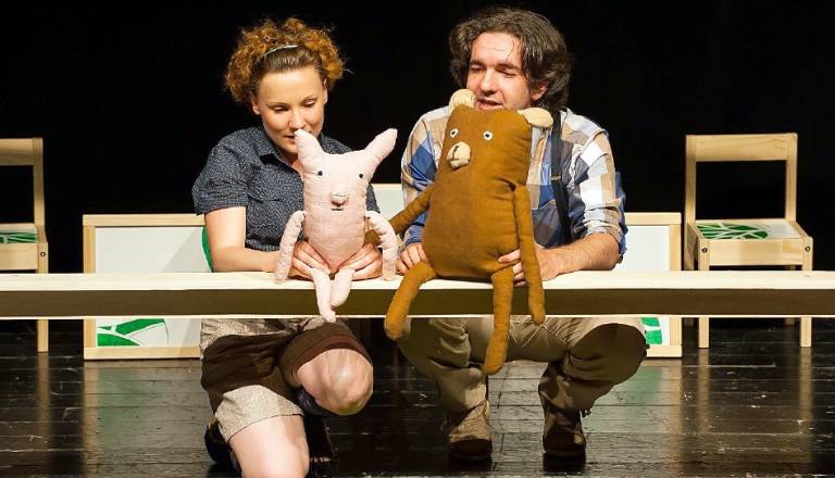 Režija: Rita Bartal Kiss, nastopata: Petra Kavaš, Vitomir Vratarič. Pu je predstava o medvedku, ki živi v stoletni hosti in ima najraje na svetu med. No, in ...