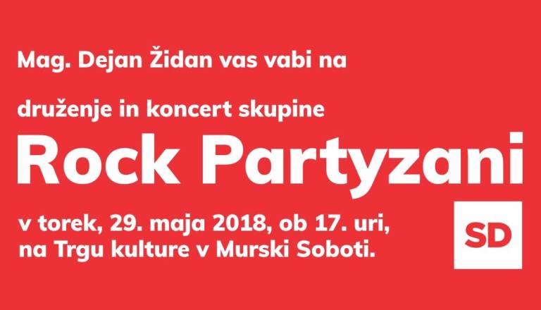 Predsednik SD Dejan Židan v torek 29. 5. 2018, ob 17.uri, vabi na druženje in Rock Partyzane v center Murske Sobote (Trg kulture). Vljudno vabljeni!