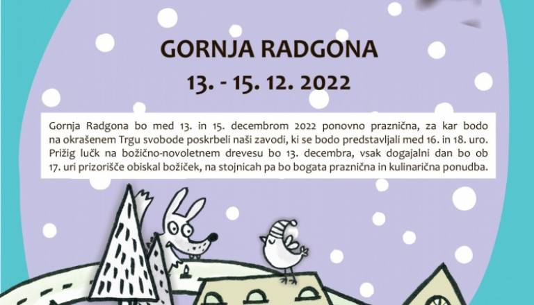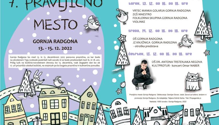 Letos bo Gornji Radgoni v prazničnem času, in sicer od torka, 13. 12., do četrtka, 15. 12. 2022, zaživelo že 7. Pravljično mesto! Nastopi naših najmlajših ...