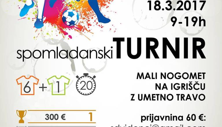ŠD Vidonci prirejamo spomladanski turnir v malem nogometu na igrišču z umetno travo, ki bo v soboto 18.3.2017, s pričetkom ob 9:00 uri v Športnem centru Vidonci ...