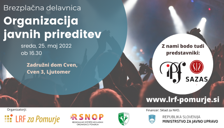 Regionalno stičišče nevladnih organizacij Pomurja skupaj s Športno zvezo Ljutomer organizira brezplačno delavnico za vse, ki organizirate javne prireditve in ...