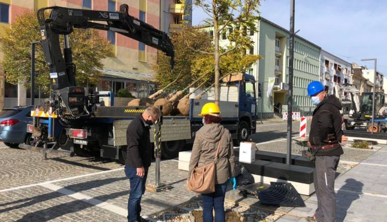 FOTO: Zasaditev 93 novih dreves na prenovljeni Slovenski ulici že v polnem teku