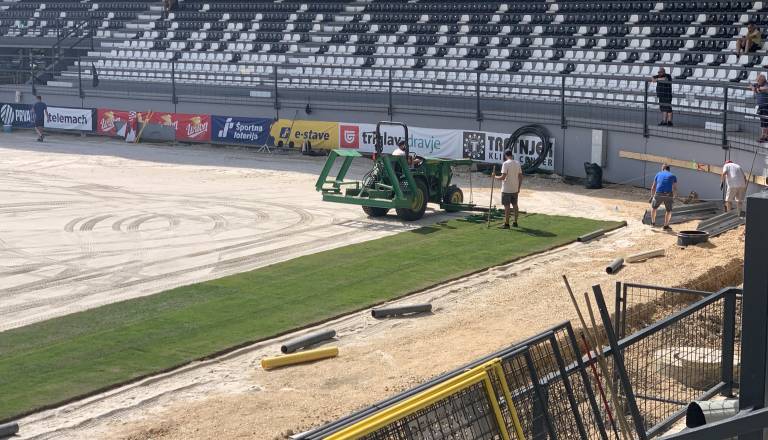 Fazanerija s prvimi metri nove podlage, enaka trava tudi na igriščih nogometnih velikanov, kot je Juventus