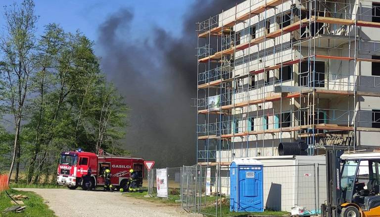 Gasilci se borijo s požarom, zagorel blok, ki ga šele gradijo