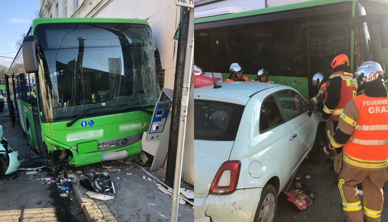 Nenavadna nesreča v Gradcu: Voznik avtobusa zavil na pločnik, zadel moškega in stavbo