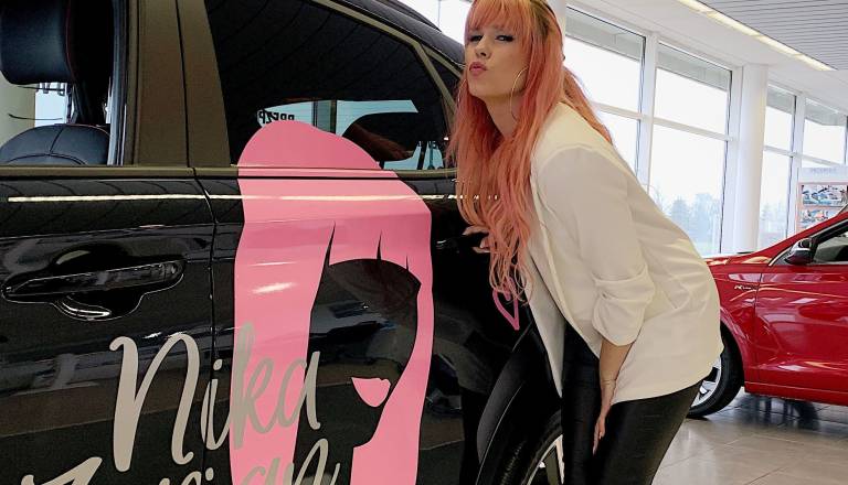 FOTO: Nika Zorjan po opravkih v novem avtomobilu, ki ga krasi njena podoba