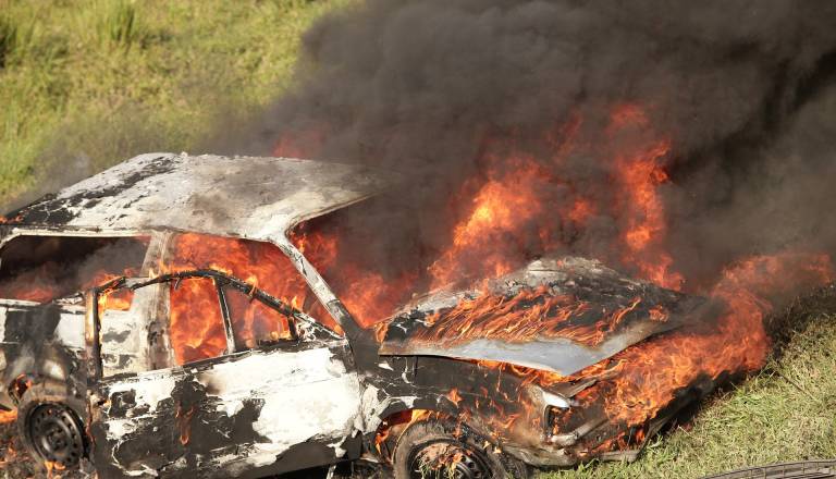 Ukraden avtomobil našli zažganega med njivami