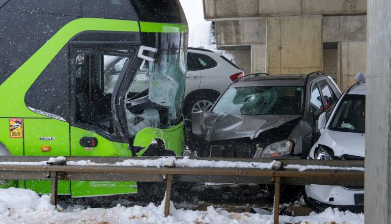 FOTO: Kaos na avtocesti: Avtobus in pet vozil v trčenju, potniki čakajo na mrazu