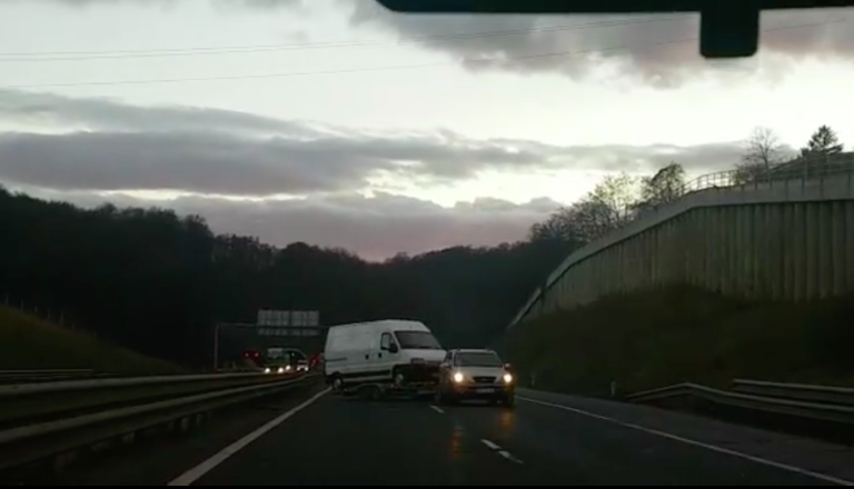 VIDEO: Vozilo s prikolico zasukalo sredi avtoceste