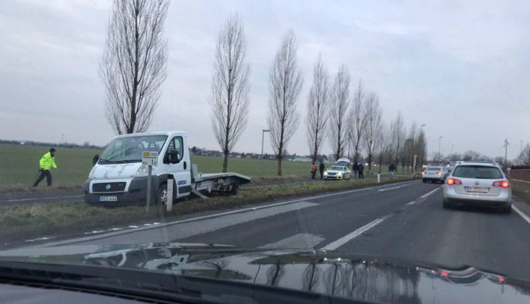 Trčila osebno vozilo in avtovleka, eno vozilo pristalo izven cestišča