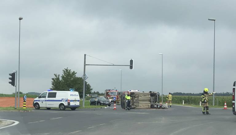 FOTO: Trčila tri vozila, eno pristalo na boku