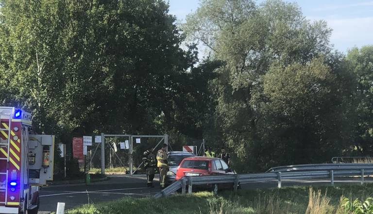 FOTO: Pred mejnim prehodom trčenje dveh vozil, ena oseba poškodovana