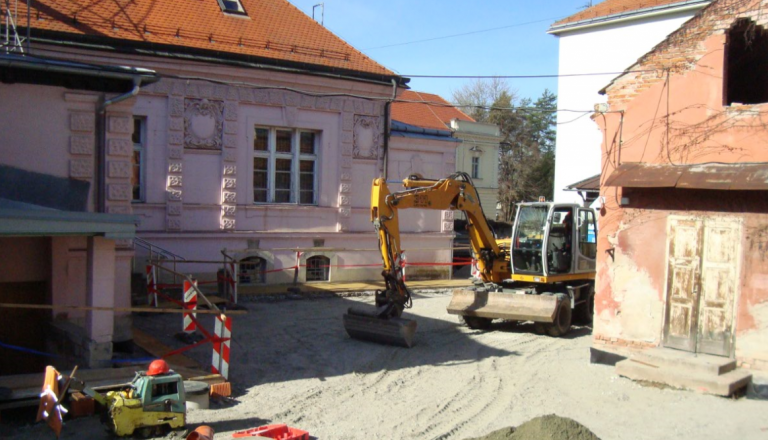 Urejanje dvorišča in dela na objektu knjižnice v polnem teku