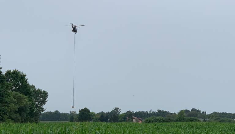 FOTO in VIDEO: Nasip ob Muri s pomočjo vojske in helikopterja saniran