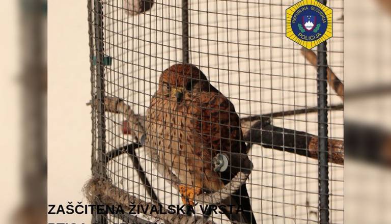 Sokola nezakonito zadrževal v zanemarjeni kletki z živalskimi trupli in zamrznjeno vodo