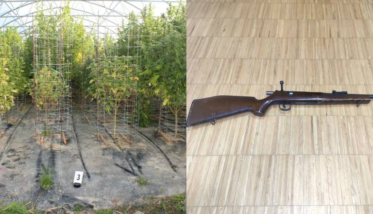 FOTO: Med hišno preiskavo odkrili večji nasad konoplje in orožje