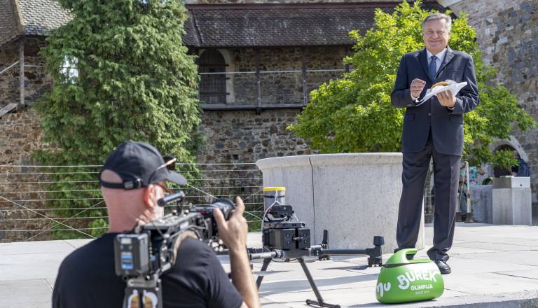VIDEO: Prvič na svetu burek dostavili z dronom, na gradu ga je prevzel župan