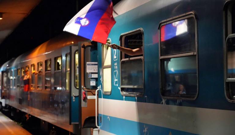 FOTO: Navijaški vlak krenil iz Ljubljane proti Frankfurtu