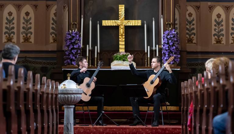 FOTO in VIDEO: Kitarski duo Javornik - Novak nastopil v evangeličanski cerkvi