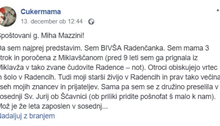 Leljak sprožil Facebook vojno med Cukermamo in Mazzinijem