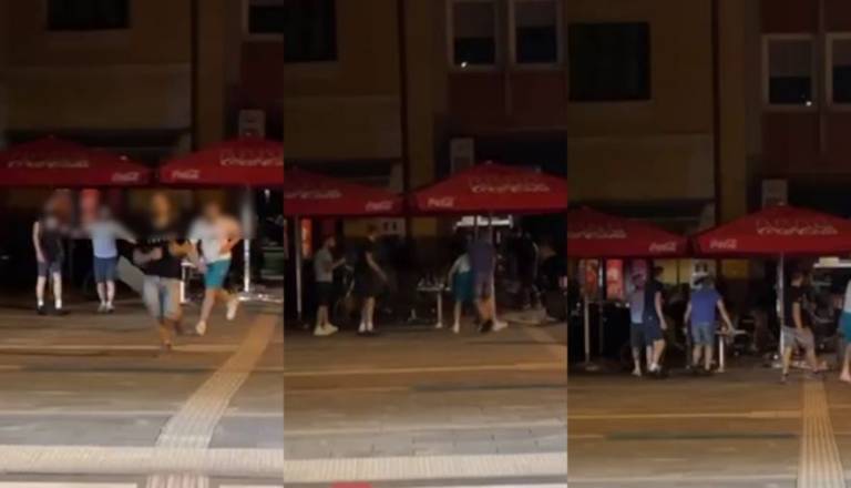 Spopad na Trgu zmage: Po besednem sporu zapele pesti, poškodovani dve osebi in gostinski inventar