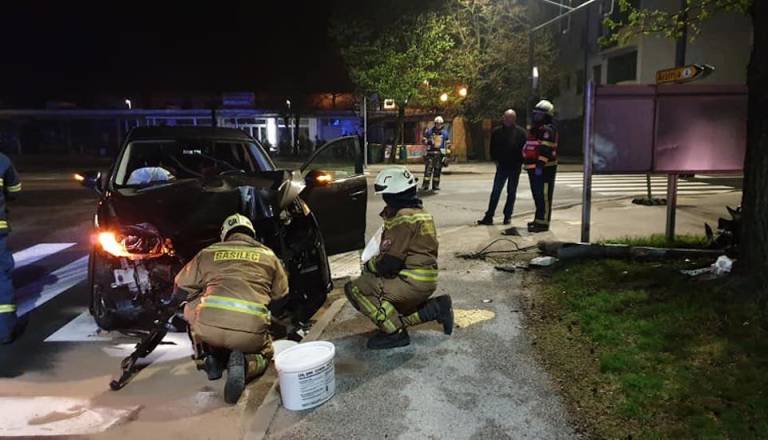 FOTO: Pri trčenju v semafor ena oseba poškodovana