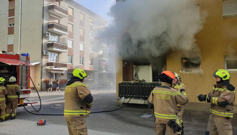 V večstanovanjski hiši izbruhnil požar, zagorela je klimatska naprava