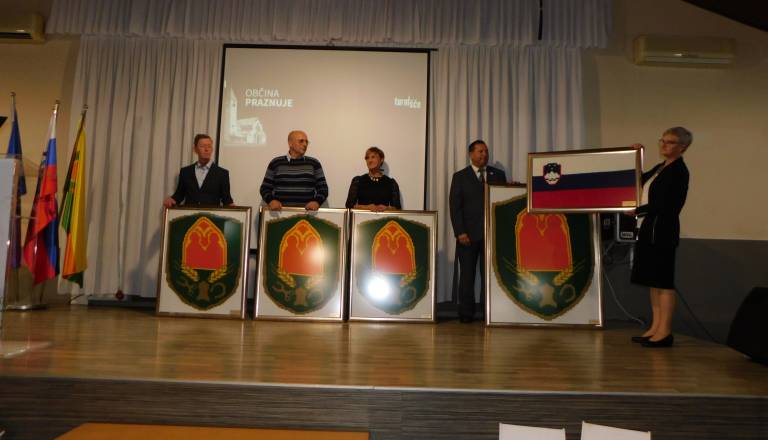 Pomurska kvačkarica podarila štiri občinske grbe in slovensko zastavo