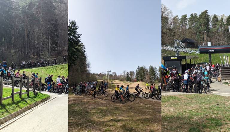 FOTO: Kolesarji na Pohorju na gondolo čakali več kot eno uro