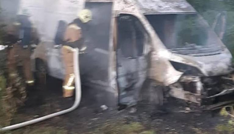 FOTO: Požar popolnoma uničil kombinirano vozilo