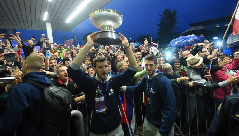FOTO in VIDEO: Večtisočglava množica pričakala najboljše košarkarje v Evropi