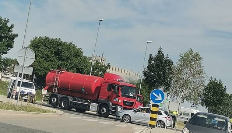 FOTO: V krožišču trčila avtomobil in tovorno vozilo