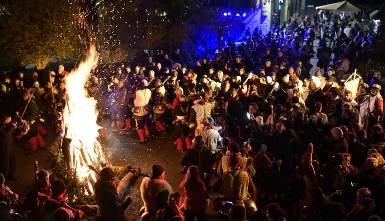 FOTO in VIDEO: Opolnoči so se prvič zaslišali zvonci, kurenti zaplesali mistični ples okoli ognja