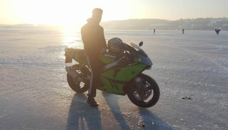Zamrznjeno jezero izkoristili za vragolije z motorjem