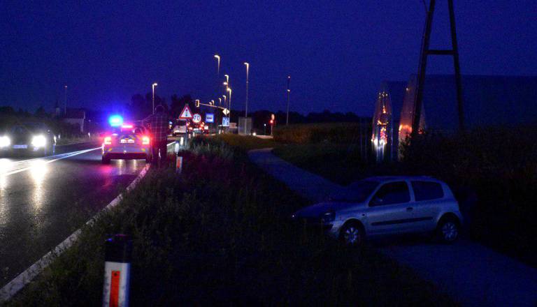 Pijana zapeljala s ceste in pristala na kolesarski stezi, škode za dva tisočaka