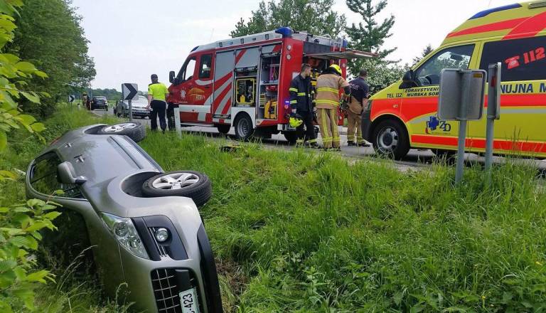 Zapeljal s ceste na travnik, kjer se je avto prevrnil