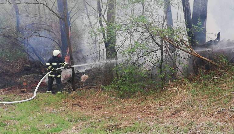 FOTO: Gasilci na intervenciji ob reki Muri, zagorele so smeti