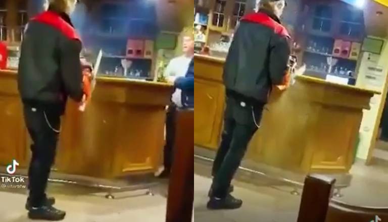 Ne boste verjeli svojim očem: V vaški gostilni z motorko prežagal točilni pult