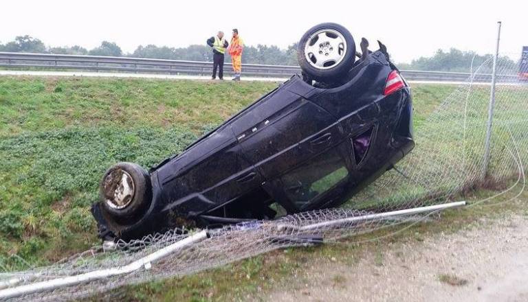 Večkrat se je prevrnil in pristal na strehi