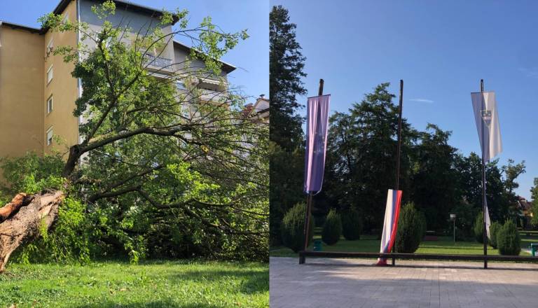 FOTO: Močan veter podiral drevesa in trgal zastave