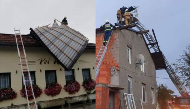 Gasilci znova na delu: V Pomurju voda zalivala ceste in kleti, neurje odkrivalo strehe