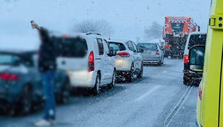 Selfie na zasneženi avtocesti? Nova nevarna poteza voznika v snežnem zametu