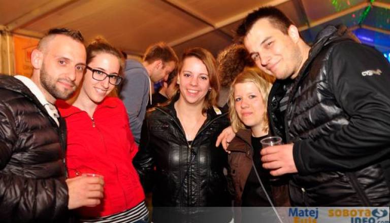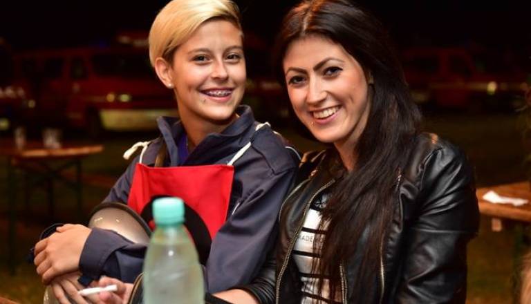 Nora veselica z Danijelo na tradicionalnem nočnem gasilskem tekmovanju