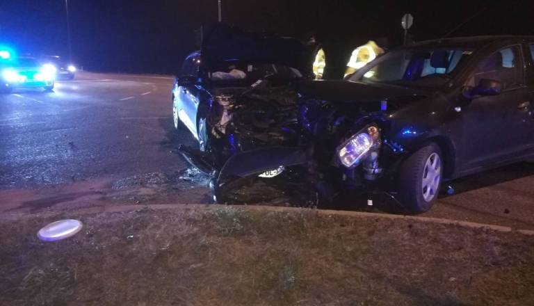 V semaforiziranem križišču trčili dve vozili, dve osebi poškodovani